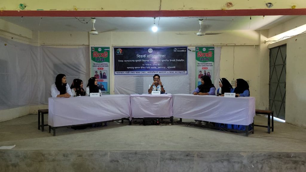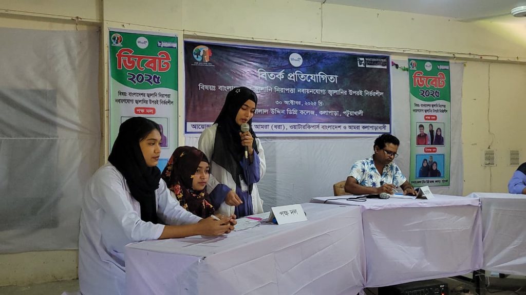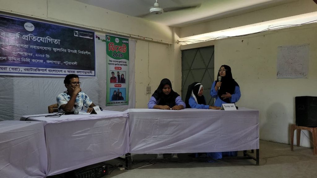 ৩০ অক্টোবর ২০২৫, বৃহস্পতিবার বেলা ১১টায় পটুয়াখালীর কলাপাড়ায় আলহাজ্ব জালাল উদ্দিন ডিগ্রি কলেজ মিলনায়তনে ‘ বাংলাদেশের জ্বালানি নিরাপত্তা নবায়নযোগ্য জ্বালানির উপর নির্ভরশীল’ শীর্ষক বিতর্ক প্রতিযোগিতা অনুষ্ঠিত হয়েছে।