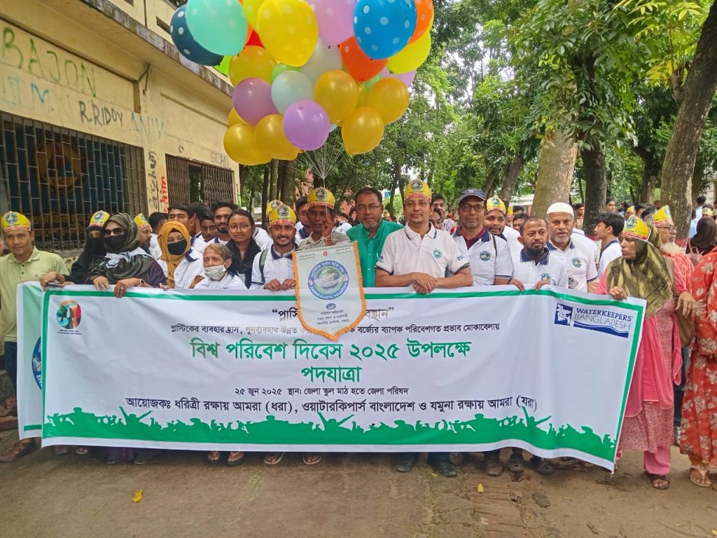 “প্লাস্টিক দূষণ আর নয়” এই প্রতিপাদ্যকে সামনে রেখে বিশ্ব পরিবেশ দিবস ২০২৫ উদযাপন উপলক্ষে ২৫ জুন ২০২৫ তারিখে সাতক্ষীরায় বর্ণাঢ্য র্যালি, আলোচনা সভা ও পুরস্কার বিতরণী অনুষ্ঠিত হয়েছে। সকাল ১০ টায় সাতক্ষীরা জেলা প্রশাসন ও পরিবেশ অধিদপ্তর, ধরিত্রী রক্ষায় আমরা (ধরা), ওয়াটারকিপার্স বাংলাদেশ ও অন্যান্য সংগঠনের আয়োজনে সাতক্ষীরা কালেক্টরেট চত্বর হতে এক বর্ণাঢ্য র্যালি বের হয়ে কানেক্টরেট চত্বর প্রদক্ষিন শেষে জেলা প্রশাসকের সম্মেলন কক্ষে এক আলোচনা সভায় মিলিত হয়।