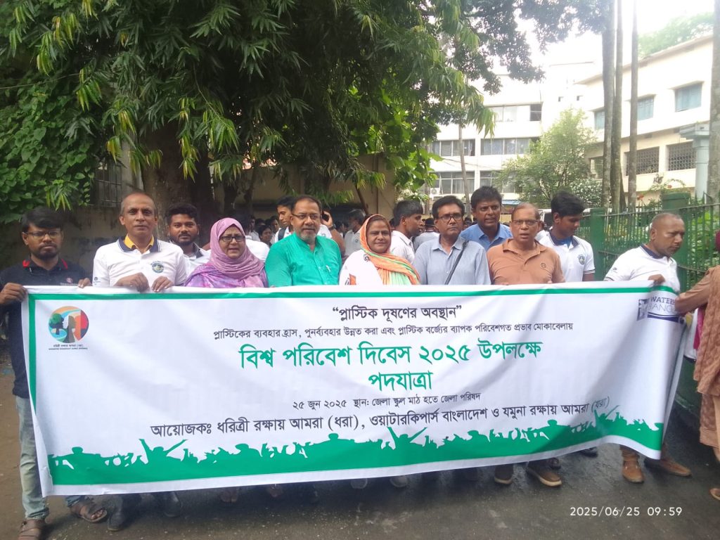 বিশ্ব পরিবেশ দিবস ২০২৫ উপলক্ষে ২৫/০৬ /২০২৫ তারিখে বগুড়া জেলার ঐতিহাসিক সাতমাথায় ধরিত্রী রক্ষায় আমরা ( ধরা) এর আয়োজনে এক র্যালি অনুষ্ঠিত হয়। র্যালিতে অংশগ্রহণ করেন সরকারি আজিজুল হক কলেজের প্রফেসর খৈয়ম কাদের, সভাপতি যমুনা রক্ষায় আমরা (যরা), মজিবর রহমান সরকারি মহিলা কলেজের অধ্যক্ষ ডঃ বেল্লাল হোসেন, উপদেষ্টা যমুনা রক্ষায় আমরা (যরা), প্রফেসর ফজলে বারী রতন, সহ-সভাপতি, বাংলাদেশ জীববৈচিত্র সংরক্ষণ ফেডারেশন, মোঃ জিয়াউর রহমান, স্থানীয় প্রতিনিধি, ধরিত্রী রক্ষায় আমরা (ধরা), খোরশেদ আলম, সদস্য সচিব, যমুনা রক্ষায় আমরা, অ্যাডভোকেট মোজাম্মেল হক, সাবেক সাধারণ সম্পাদক, বগুড়া জেলা বার কাউন্সিল, মোঃ জাহেদুর রহমান জাহিদ, সদস্য ধরিত্রী রক্ষায় আমরা ( ধরা) সহ বিভিন্ন সামাজিক সংগঠনের নেতৃবৃন্দ ও শিক্ষা প্রতিষ্ঠানের ছাত্র-ছাত্রী ।