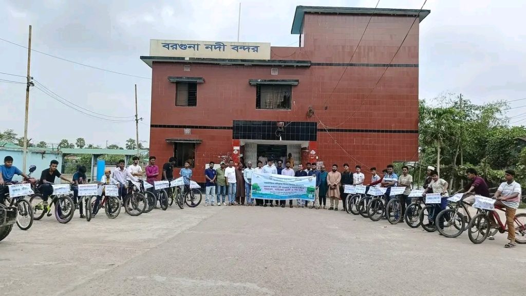 বরগুনা: খাকদোন নদী পুনরুদ্ধার ও খননের দাবিতে সাইকেল র্যালি ও পথসভা অনুষ্ঠিত হয়। সকাল ১০টায় বরগুনা নদী বন্দর থেকে র্যালি শুরু হয়ে পায়রা নদীর প্রান্তে গিয়ে শেষ হয়। অতিরিক্ত জেলা প্রশাসক অনিমেষ বিশ্বাস, পানি উন্নয়ন বোর্ডের নির্বাহী প্রকৌশলী মো. হান্নান প্রাধান, নাগরিক অধিকার সুরক্ষা কমিটির নেতৃবৃন্দ এবং বরগুনা সাইক্লিং কমিউনিটির সদস্যরা অংশ নেন। পথে সোনাখালি, কেওরাবুনিয়া, দৌলতলা ও ইটবারিয়ায় সচেতনতা সভা হয় এবং লিফলেট বিতরণ করা হয়। কর্মসূচি শেষে আহ্বান জানানো হয়: “নদী বাঁচাও, জীবন বাঁচাও—খাকডন নদী পুনরুদ্ধার করি, নদী রক্ষা করি।