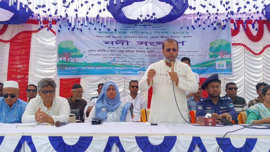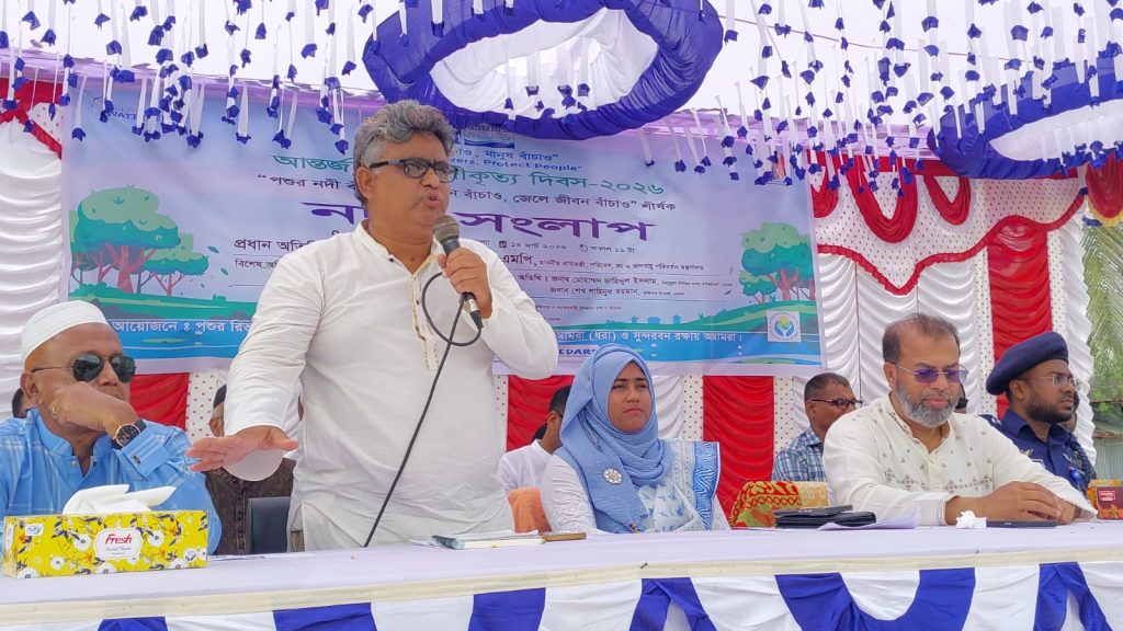 মোংলা: পশুর নদীর তীরে কানাইনগরে নদী সংলাপ অনুষ্ঠিত হয়। ধরা, পশুর রিভার ওয়াটারকিপার, সুন্দরবন রক্ষায় আমরা এবং ওয়াটারকিপারস বাংলাদেশ আয়োজিত এ কর্মসূচিতে বাদাবন সংঘ ও লিডার্স সহযোগিতা করে। প্রধান অতিথি পরিবেশ, বন ও জলবায়ু পরিবর্তন মন্ত্রণালয়ের প্রতিমন্ত্রী ড. শেখ ফারিদুল ইসলাম এমপি বলেন, সুন্দরবন রক্ষায় নদীর প্রবাহ পুনরুদ্ধার জরুরি। তিনি অবৈধ বাঁধ অপসারণ, নদী ও খাল খনন, কয়লা, প্লাস্টিক ও শিল্প দূষণ বন্ধের আহ্বান জানান এবং জলবায়ু ট্রাস্ট ফান্ড থেকে ঝুঁকিপূর্ণ এলাকায় বরাদ্দ দেওয়ার প্রতিশ্রুতি দেন। স্থানীয় প্রশাসন, জেলে সম্প্রদায়, নারী প্রতিনিধি ও সাধারণ মানুষ অংশ নেন। কর্মসূচির আগে একটি র্যালি অনুষ্ঠিত হয়।