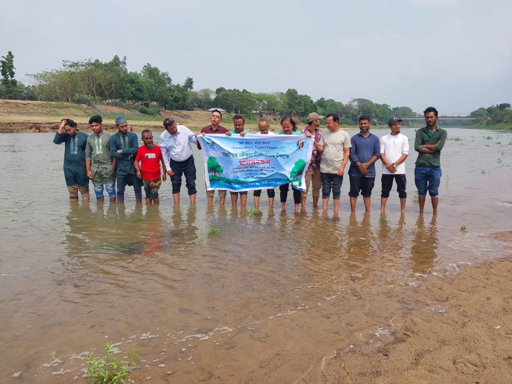 চুয়াডাঙ্গা, পাথরঘাটা, মৌলভীবাজার, বগুড়া: দেশের অন্যান্য অঞ্চলেও মানববন্ধন, র্যালি, পথসভা ও আলোচনা সভা অনুষ্ঠিত হয়। চুয়াডাঙ্গায় মাথাভাঙ্গা নদীতে মানববন্ধন হয়, যেখানে প্রশাসন ও সরকারকে দখল ও দূষণমুক্ত রাখার আহ্বান জানানো হয়। পাথরঘাটায় স্থানীয়রা বিষখালী নদী রক্ষায় অনশন করেন, টেকসই বেড়িবাঁধ, সামাজিক বনায়ন ও পুনর্বাসনের দাবি জানান। মৌলভীবাজারে মানববন্ধন অনুষ্ঠিত হয় মনু, গোপলা ও শাখা বরাক নদী খনন এবং দখলমুক্ত করার দাবিতে। বক্তারা সবাইকে আহ্বান জানান নদীকে জীবন্ত সম্পদ হিসেবে স্বীকৃতি দিতে এবং সচেতনতা আন্দোলনে যোগ দিতে। বগুড়ায় নাগরিকরা মানববন্ধনে অংশ নেন নদী সংরক্ষণ, দখলমুক্তি এবং দূষণ প্রতিরোধের দাবিতে। বক্তারা বলেন: “নদী আমাদের জীবন, সংস্কৃতি ও জীবিকার অবিচ্ছেদ্য অংশ। নদী বাঁচলে কৃষি, পরিবেশ ও মানুষও বাঁচবে।” কর্মসূচি শেষে সম্মিলিত আহ্বান জানানো হয়: “আসুন, আমরা সবাই মিলে বাংলাদেশের নদীগুলোকে দখল ও দূষণমুক্ত করি।”