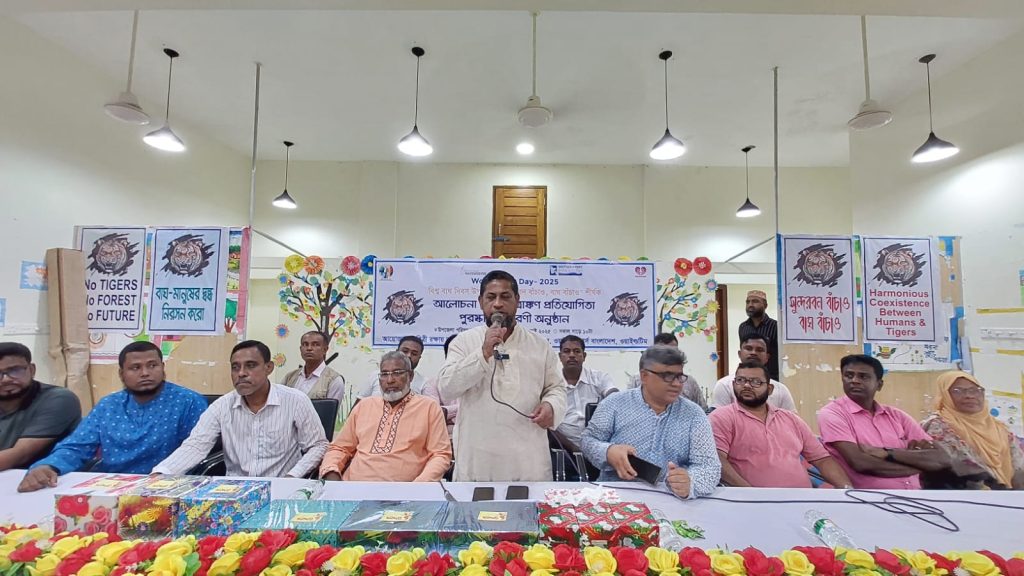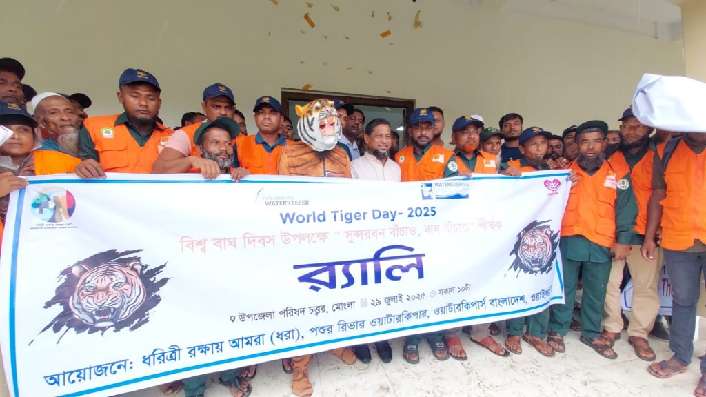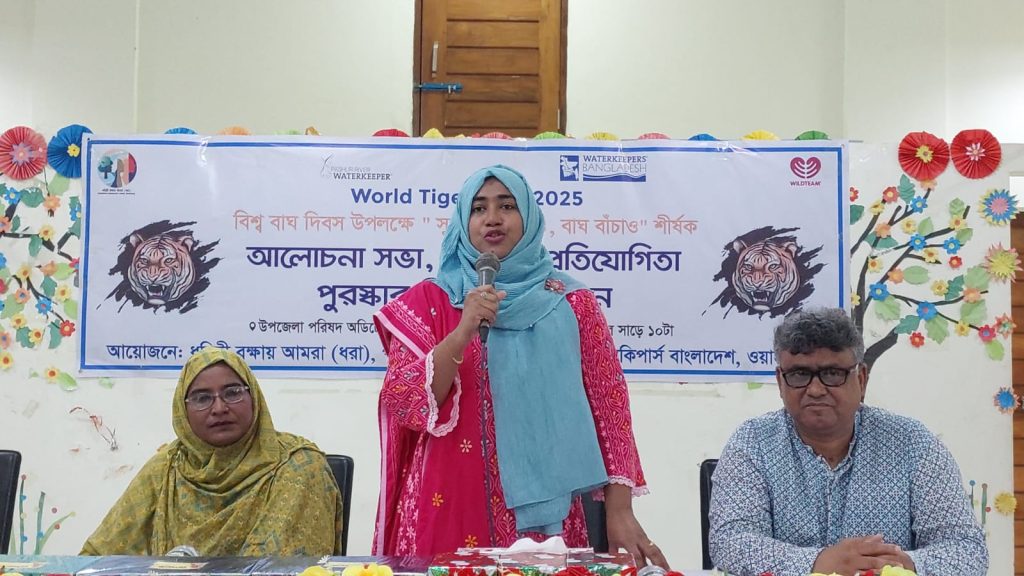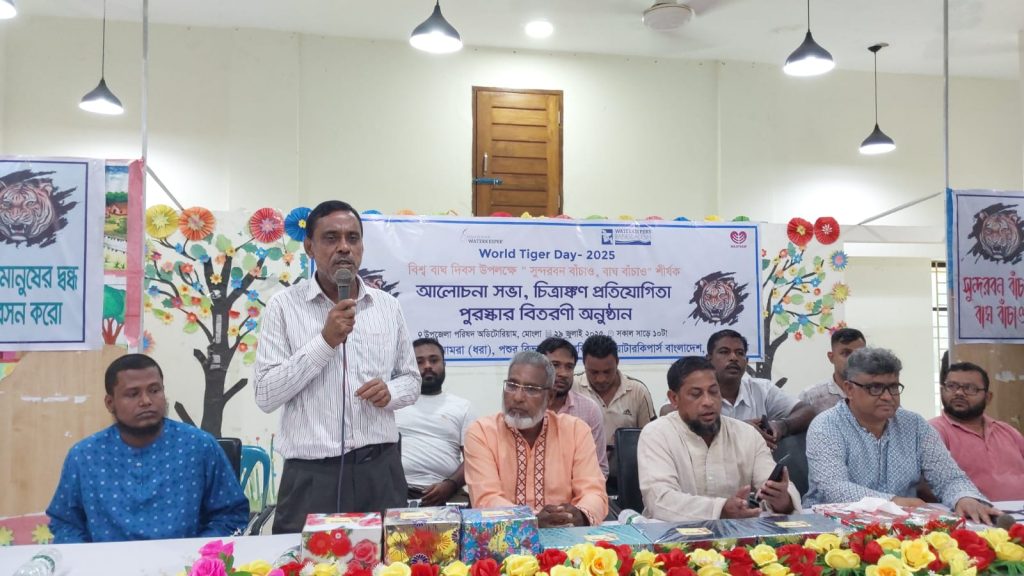 ২৯ জুলাই মঙ্গলবার সকালে মোংলা উপজেলা অডিটোরিয়ামে বিশ্ব বাঘ দিবসে “সুন্দরবন বাঁচাও, বাঘ বাঁচাও” শীর্ষক এক আলোচনা সভা অনুষ্ঠিত হয়। ধরিত্রী রক্ষায় আমরা (ধরা), ওয়াটারকিপার্স বাংলাদেশ ও পশুর রিভার ওয়াটারকিপারের আয়োজনে এ আলোচনা সভা অনুষ্ঠিত হয়। আলোচনা সভায় সভাপতিত্ব করেন উপজেলা নির্বাহী অফিসার শারমিন আক্তার সুমী। প্রধান অতিথির হিসাবে উপস্থিত ছিলেন বিএনপির জাতীয় নির্বাহী কমিটির গবেষণা বিষয়ক সম্পাদক হবিগঞ্জ কৃষি বিশ্ববিদ্যালয়ের সিন্ডিকেট সদস্য কৃষিবিদ মোহাম্মদ শামীমুর রহমান শামীম। আলোচনা সভায় বিশেষ অতিথি হিসাবে বক্তৃতা করেন উপজেলা সমাজসেবা অফিসার এস এম মাসুদ রানা, বীর মুক্তিযোদ্ধা শেখ আবু হানিফ, বিশিষ্ট ব্যবসায়ি মোঃ শাহ্ আলম শেখ, ওয়াইল্ড টিমের সাইফুল ইসলাম, জেলে সমিতির আব্দুর রশিদ হাওলাদার, পরিবেশকর্মী হাছিব সরদার, মেহেদী হাসান প্রমূখ। আলোচনা সভার সঞ্চালনায় ছিলেন পশুর রিভার ওয়াটারকিপার, সুন্দরবন রক্ষায় আমরা’র সমন্বয়কারী মোঃ নূর আলম শেখ। সভাপতির বক্তব্যে উপজেলা নির্বাহী অফিসার শারমিন আক্তার সুমী বলেন “বাঘের বৃদ্ধি, সুন্দরবনের সমৃদ্ধি” শ্লোগানে বাংলাদেশে আমরা বিশ্ব বাঘ দিবস পালন করছি। সুন্দরবনে বাঘ বৃদ্ধি পেয়েছে। সুন্দরবনের পর্যটকরা এখন প্রতিনয়ত বাঘ দেখে থাকেন। বাঘ রক্ষায় বনজীবী ও বন সংলগ্ন এলাকায় মানুষের মধ্যে সচেতনতা বাড়াতে হবে। প্রধান অতিথির বক্তৃতায় কৃষিবিদ মোহাম্মদ শামীমুর রহমান শামীম বলেন বাঘ আমাদের শৌর্য্য-বীর্জের প্রতীক, সাহসের প্রতীক। জাতীয় ক্রিকেট দলের অফিসিয়াল লোগো হচ্ছে বাংলার বাঘ। বাঘ আমাদের গর্ব, বাঘ আমাদের অহংকার। সুন্দরবন বাঁচলে বাঘ বাঁচবে। মোঃ নূর আলম শেখ বলেন গত ২৫ বছরে ৩০টি বাঘের মৃত্যু হয়েছে। এর মধ্যে স্বাভাবিক মৃত্যু হয়েছে মাত্র ১০টি বাঘের। ১৪টি বাঘ পিটিয়ে মেরেছে স্থানীয় মানুষ। বাঘ মানুষের দ্বন্দ্ব নিরসন করে আমাদের সবাইকে বাঘ বন্ধু হতে হবে। সভায় বক্তারা বলেন জলবায়ু পরিবর্তনের অভিঘাত ও দূষণের কবল থেকে বাঘের আবাসস্থল সুন্দরবনকে বাঁচাও। বিষযুক্ত পানি পান করে বাঘ নানা রোগে আক্রান্ত হয়ে মারা যাচ্ছে। সুন্দরবনের নদী-খালে বিষ প্রয়োগকারী ও বাঘ পাচারকারীদের রুখে দিতে হবে। সুন্দরবন বাঁচলে বাঘ বাঁচবে। সংকটাপন্ন বন্যপ্রাণী বাঘ রক্ষায় সমন্বিত উদ্যোগ ও পরিকল্পনা চাই। আলোচনা সভার আগে “সুন্দরবন বাঁচাও, বাঘ বাঁচাও” শীর্ষক বর্ণাঢ্য র্যালি অনুষ্ঠিত হয়। আলোচনা সভা শেষে “সুন্দরবনের বাঘ” বিষয়ক শিশু চিত্রাংকণ প্রতিযোগিতার পুরস্কার বিতরণ করেন কৃষিবিদ মোহাম্মদ শামীমুর রহমান শামীম।