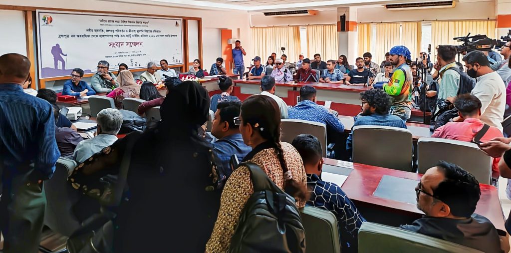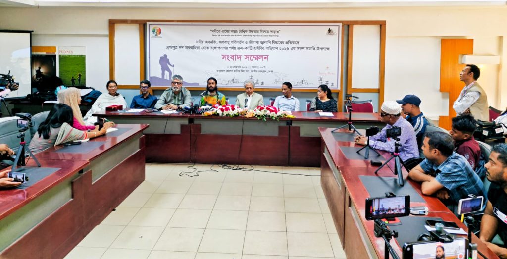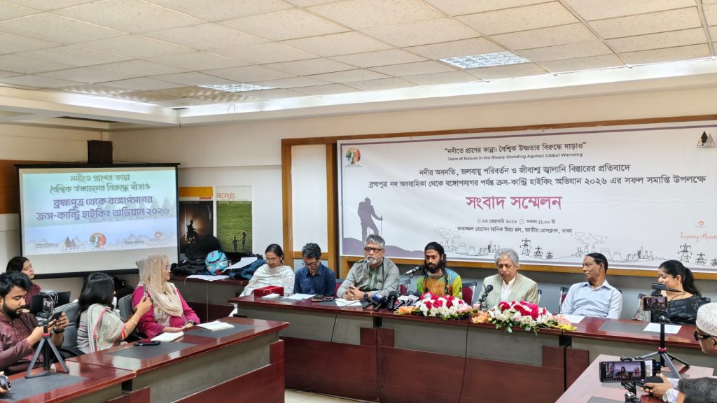 ২৩ ফেব্রুয়ারি ২০২৬ তারিখেজাতীয় প্রেস ক্লাবের তফাজ্জল হোসেন মানিক মিয়া হলে অভিযাত্রী মাসফিকুল হাসান টনি’র ‘নদীতে প্রাণের কান্না: বৈশ্বিক উষ্ণতার বিরুদ্ধে দাঁড়াও’ শীর্ষক ক্রস-কান্ট্রি হাইকিং অভিযানের অভিজ্ঞতা তুলে ধরতে এক সংবাদ সম্মেলন অনুষ্ঠিত হয়। পরিবেশবাদী নাগরিক সংগঠন ‘ধরিত্রী রক্ষায় আমরা (ধরা)’ এবং ‘বাংলা মাউন্টেনিয়ারিং অ্যান্ড ট্রেকিং ক্লাব (BMTC)’ যৌথভাবে এই সম্মেলনের আয়োজন করে। সংবাদ সম্মেলনে অভিযাত্রী মাসফিকুল হাসান টনি কুড়িগ্রামের রৌমারির ইটালুকান্দার ডিগ্রীর চর থেকে ভোলার চর কুকরি-মুকরি পর্যন্ত দীর্ঘ ১৮ দিনে ৬৩০ কিলোমিটার পথ হেটে পাড়ি দেওয়ার অভিজ্ঞতা বর্ণনা করেন। তিনি বলেন, নদীর তীর ধরে হাটার ক্ষেত্রে সবচেয়ে বড় চ্যালেঞ্জ ছিল রাস্তা খুজে বের করা। নদীর পাড় ধরে হাটতে গিয়ে তিনি নদীর পাড়ের মানুষের বৈচিত্রতা দেখেছেন আবার নদী ভাঙন, দূষণ এবং চরের ভয়াবহতা দেখে আতকে উঠেছেন। সংবাদ সম্মেলনে সভাপতিত্ব করেন ‘ধরা’র সহ-আহ্বায়ক এম. এস সিদ্দিকী। সংবাদ সম্মেলনে ধরা’র সদস্য সচীব শরীফ জামিল অভিযানের উদ্দেশ্য তুলে ধরে বক্তব্য দেন। সম্মেলন অনুষ্ঠানটি সঞ্চালনা করেন ধরিত্রী রক্ষায় আমরা (ধরা) এর সদস্য ও রিভার বাংলা’র সম্পাদক ফয়সাল আহমেদ।