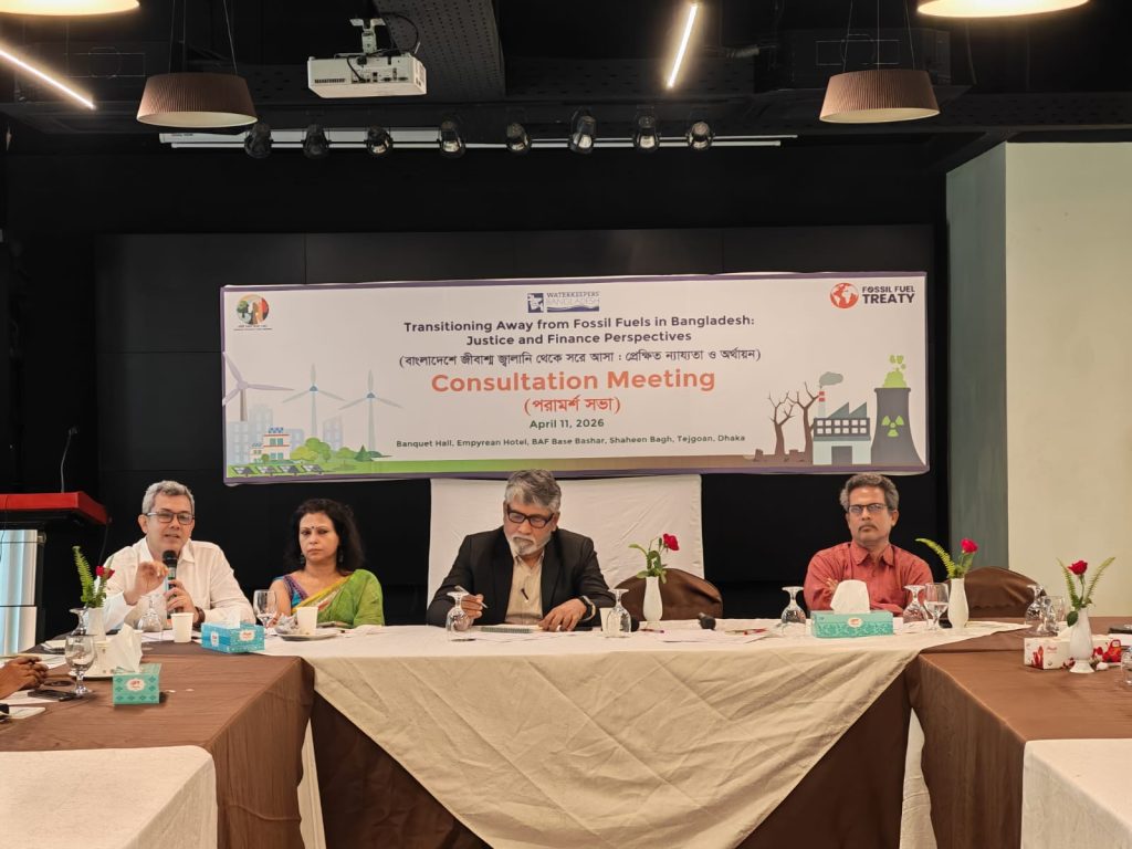 বাংলাদেশে জীবাশ্ম জ্বালানির ওপর নির্ভরতা কমিয়ে একটি টেকসই, ন্যায়ভিত্তিক ও পরিবেশবান্ধব জ্বালানি ব্যবস্থা গড়ে তোলার লক্ষ্যে “ধরিত্রী রক্ষায় আমরা (ধরা)”, ওয়াটারকিপার্স বাংলাদেশ এবং ফসিল ফুয়েল ট্রিটি ইনিশিয়েটিভ-এর যৌথ উদ্যোগে “বাংলাদেশের জীবাশ্ম জ্বালানি রূপান্তর: প্রেক্ষিত ন্যায্যতা ও অর্থায়ন” শীর্ষক একটি পরামর্শ সভা অনুষ্ঠিত হয়েছে।