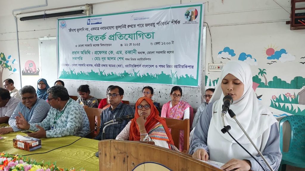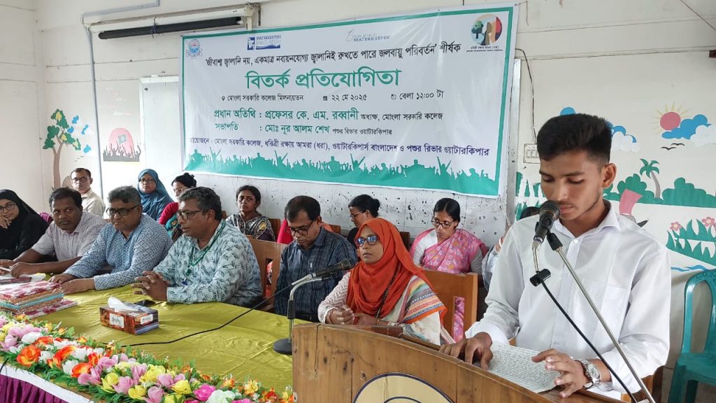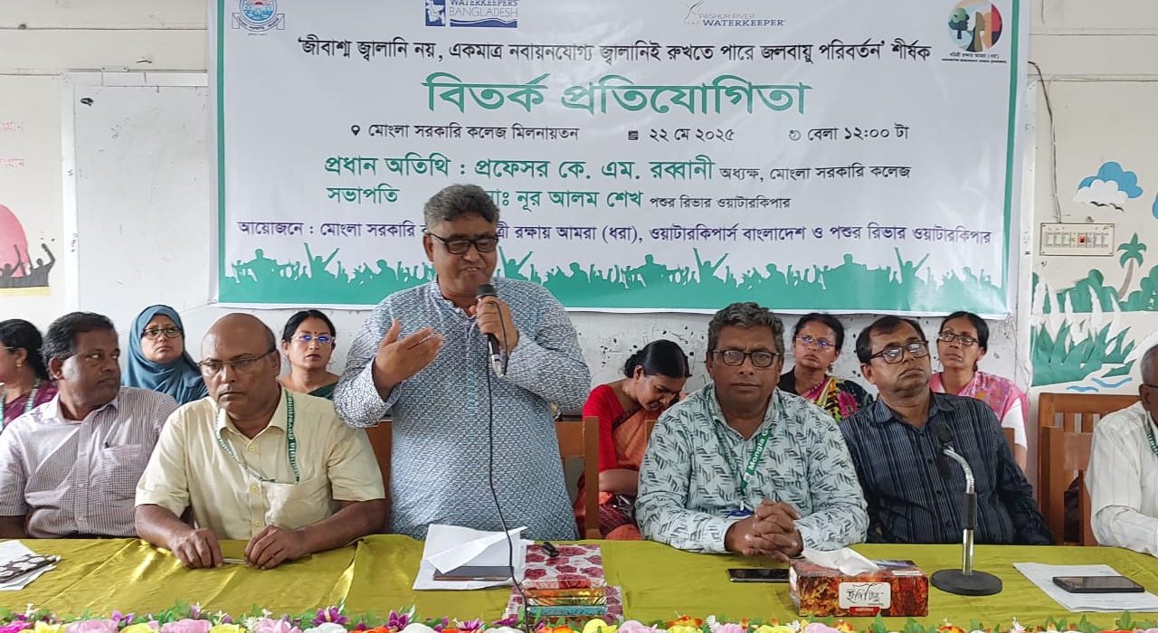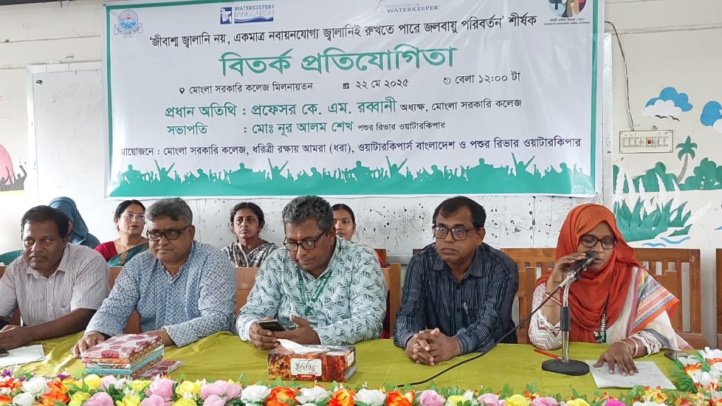 ২২ মে বৃহস্পতিবার বেলা ১২ টায মোংলা সরকারি কলেজ মিলনায়তনে জীবাশ্ম জ্বালানি নয়, একমাত্র নবায়নযোগ্য জ্বালানিই রুখতে পারে জলবায়ু পরিবর্তন শীর্ষক এক বিতর্ক অনুষ্ঠিত হয়। ধরিত্রী রক্ষায় আমরা (ধরা), মোংলা সরকারি কলেজ, ওয়াটারকিপার্স বাংলাদেশে ও পশুর রিভার ওয়াটারকিপারের যৌথভাবে এ বিতর্কের আয়োজন করা হয়।