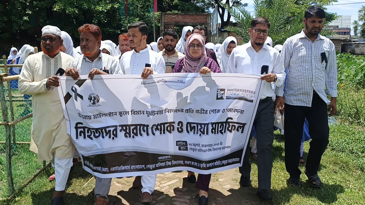 ঢাকা’র উত্তরায় বিমান দুর্ঘটনায় নিহতদের স্মরণে শোক…
